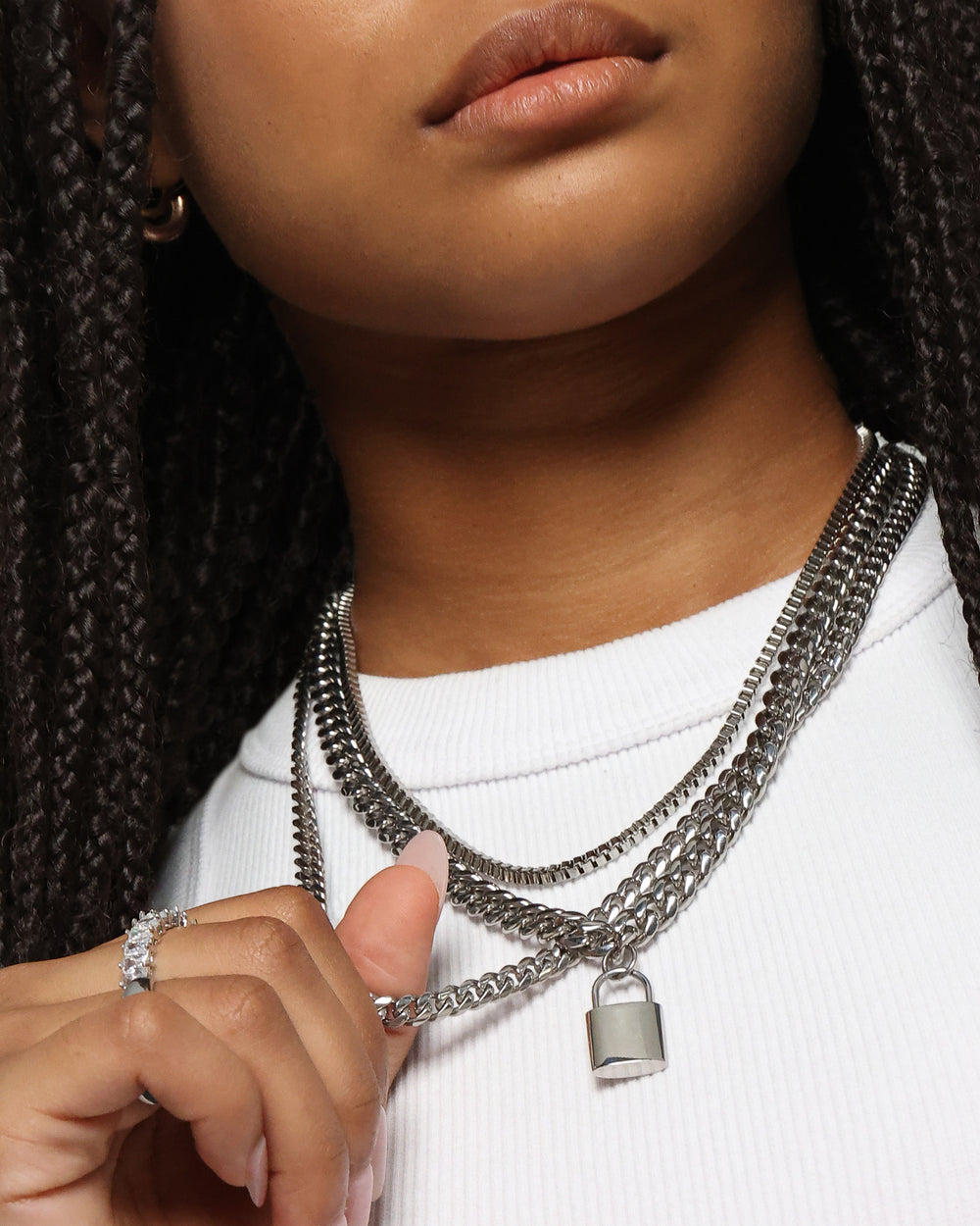 Padlock Triple Chains Necklace Pack