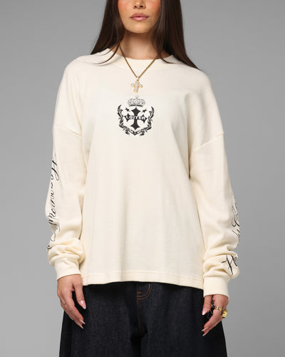 Make the ultimate statement in comfort with the Purity Thermal Long Sleeve T-Shirt by Loiter. Created to stand out, this tee boasts inspiring mix of embroidered and printed graphics on an incredibly soft waffle knit construction tee with ribbed crewneck and cuffs. It is complemented with dropped shoulders to keep the laidback, streetwear vibes going. Cop yours today at Culture Kings, only while stock lasts.