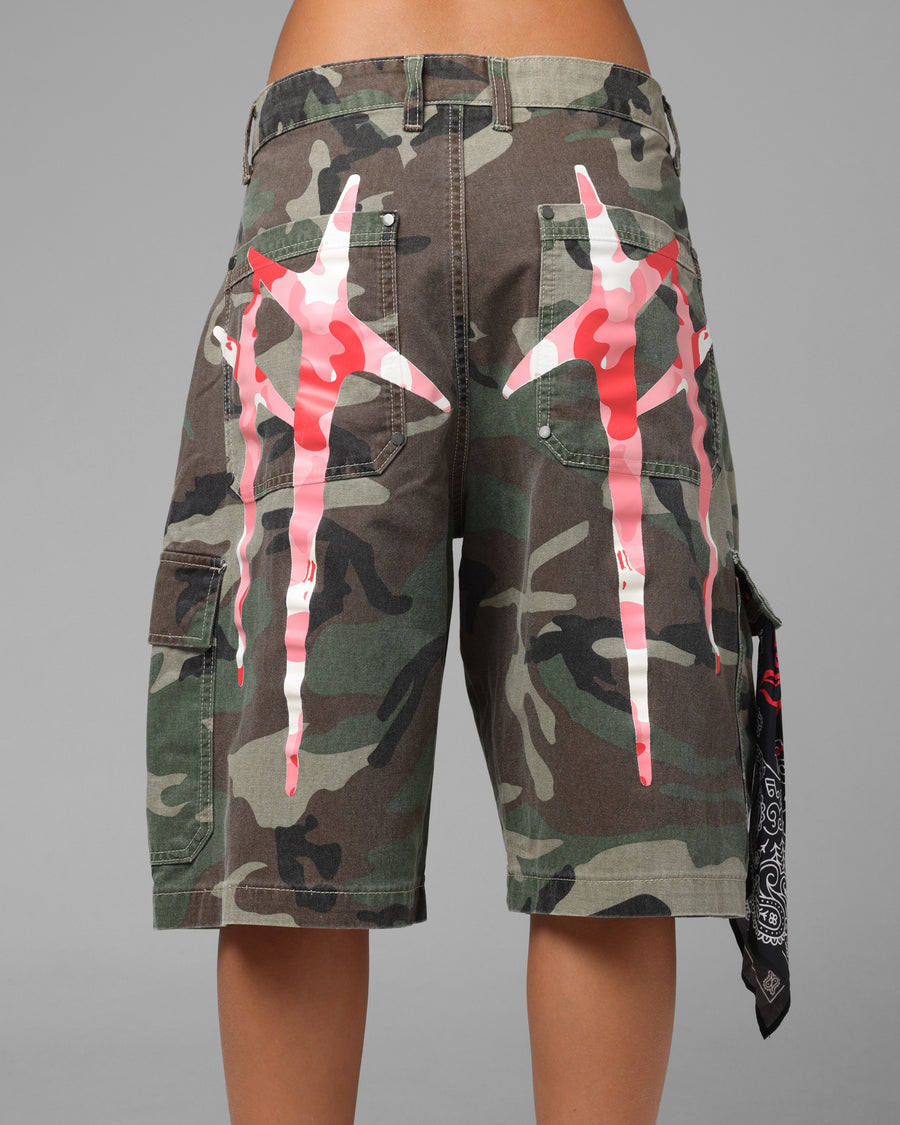 Set your sights on the stars with the latest jean drop at Loiter. The Star Born Cargo Shorts feature iconic printed star graphics with an all over camo print that pairs perfectly with the baggy fit for a look that is out of this world. Don't sleep on these.