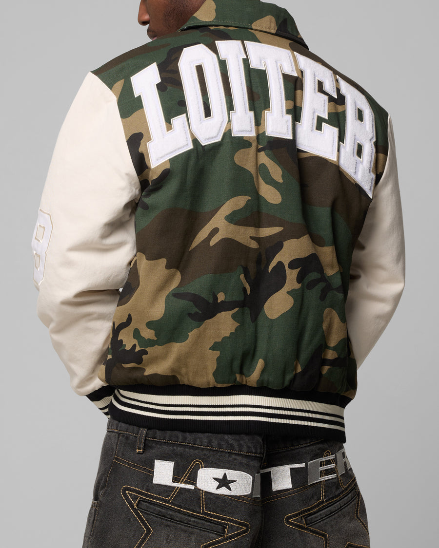 Stay warm while looking fresh and who better to heat up your wardrobe than Loiter! This jacket features a mix of embroidered graphics and chenille appliqués that'll get you all the compliments, contrast cuffs and hems add a little something extra and the snap button closure finishes off the classic varsity jacket vibe. Cop yours today at Culture Kings.