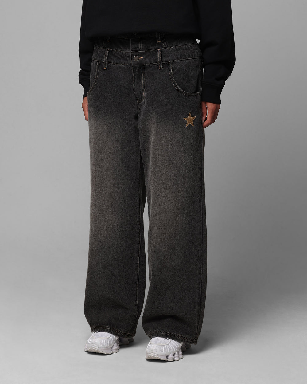 Elevate your jeans game with the Star Layered Jeans by Loiter. These jeans feature embroidered graphics to showcase the brand you love with the iconic star across the pockets. With contrast stitching and a double-layered look at the waist paired with an ultra baggy fit, that brings back the early 2000's look. Get a look that is out of this world and cop yours today at Culture Kings.