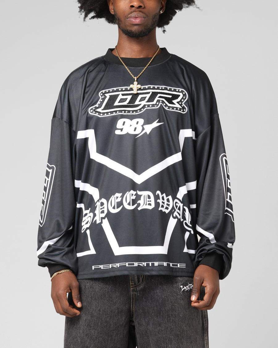 Cop the Thrill Racing Long Sleeve T-Shirt for the perfect blend of street and sportswear. This long sleeve tee features a mix of embroidered and printed graphics topped with rhinestone details for a subtle flex. Finished with ribbed crewneck and cuffs and twin needle stitching for extra reinforcement. Cop yours today at Culture Kings.