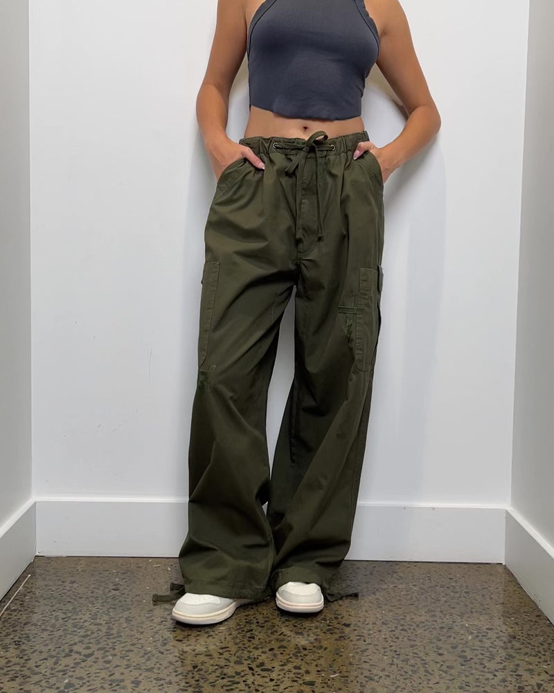 Cop a streetwear essential thanks to an epic collaboration of Loiter X The Anti Order! The Loiter X The Anti Order Parachute Pants feature an iconic silhouette with an elasticated waistband and ribbed cuffs to cinch the look and create a fire 'fit. With both embroidered and printed brand logos and covered in pockets, these pants belong in every wardrobe. Get your hand son these today, only at Culture Kings!