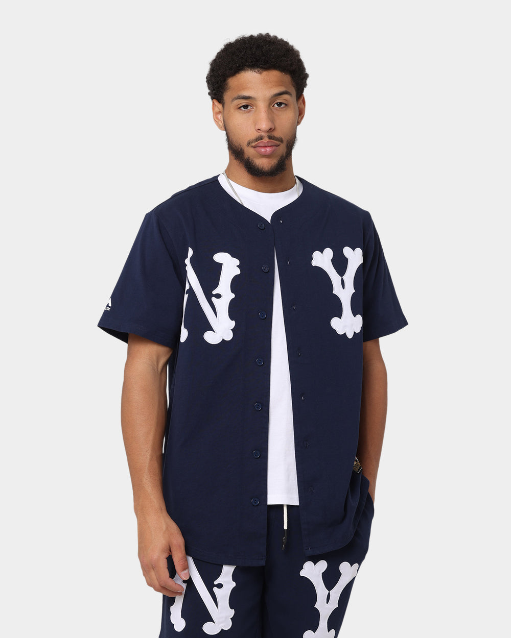 Rep your team with the New York Yankees Highlanders Rep Jersey from Majestic Athletic! Featuring embroidered team appliqués so you can show off your team spirit. A lightweight button-up that's perfect by itself or to layer. Cop yours today and join the pros!