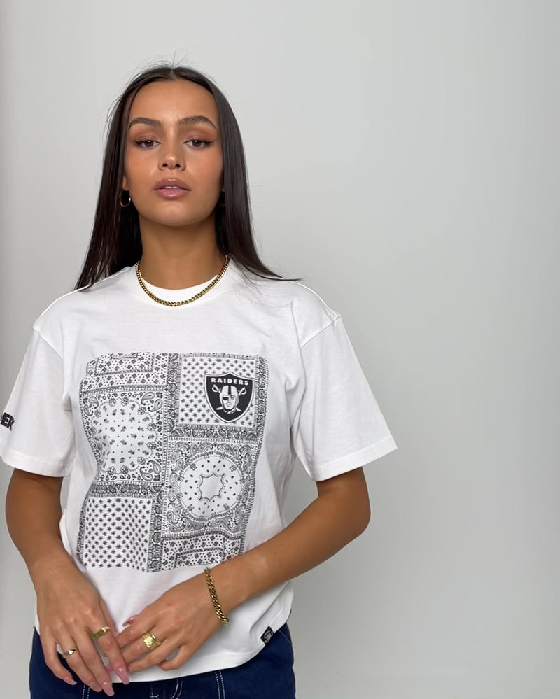 Pair the Las Vegas Raiders Paisley Panel Print T-Shirt for your favourite jeans or cargos for effortless streetwear style. With its paisley graphic printed on the front and team logo on the sleeve, it's a world-exclusive cop you can't miss out on.