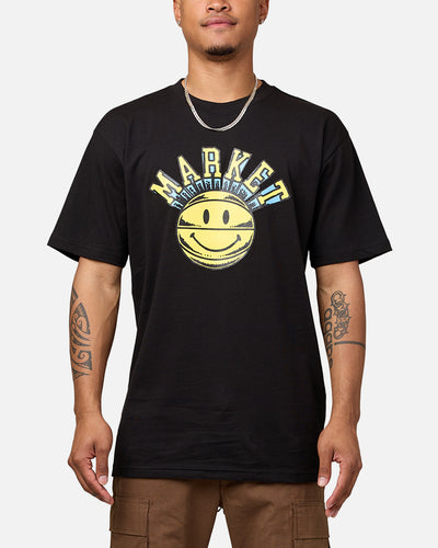 Basketball-themes and bold graphics go hand in hand with MARKET, breaking into the realm of streetwear with styles like this Smiley Hoops T-Shirt. Designed in an officially licensed collaboration with SMILEY®, it features the iconic smiley-face stamped on a basketball on the front, complemented by the brand’s signature arched logo. You won't want to miss out on this one, grab yours today at Culture Kings.