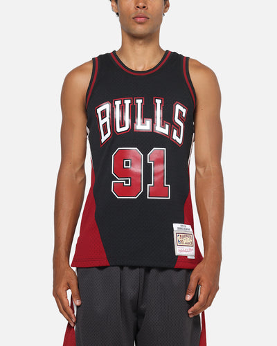 For all the ballers. The Chicago Bulls Dennis Rodman Rave Jersey is made with breathable polyester mesh with side vents to keep you cool. It's lined with anti-irritation ribbed trim at neckline and armholes for added comfort. Finished with player and team graphics and the NBA patch on the left shoulder for an on-court look. Cop yours today at Culture Kings.