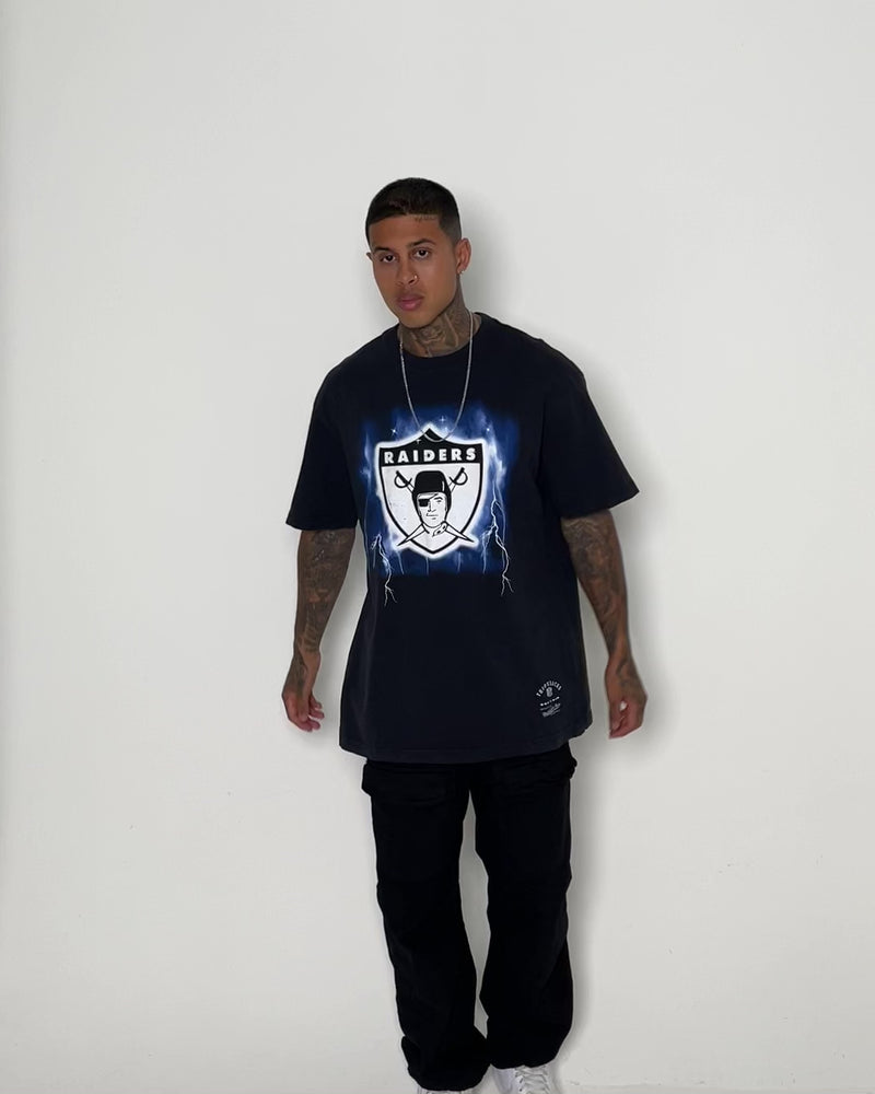The latest drop by Mitchell & Ness lets you rep your fave teams in style. The Las Vegas Raiders Logo Lightning T-Shirt features striking printed graphics that'll have all eyes on you, twin-needle stitching so you know this tee will withstand many game days to come and finished off with dropped shoulders to add a streetwear spin to it. Cop yours today at Culture Kings, while stocks last.