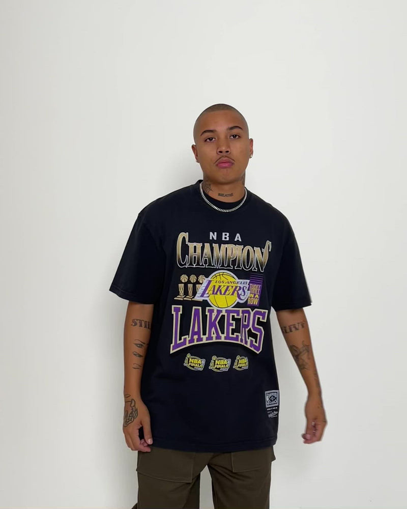 An iconic streetwear piece, Mitchell & Ness delivers the Los Angeles Lakers Champs Short Sleeve T-Shirt. Featuring champion graphics printed on the front, quality cotton, and twin needle stitching. Cop this tee for a winning piece!
