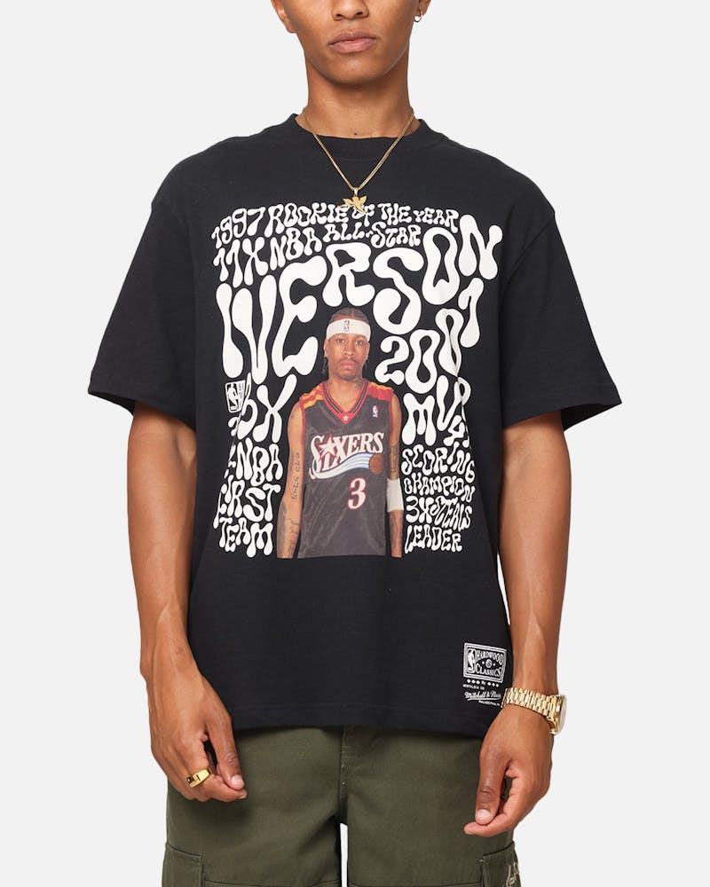 Geek out with the Philadelphia 76ers Allen Iverson Player Abstract T-Shirt that gives off an old-school look and feel with its retro graphic print and vintage wash. Made with premium cotton for a comfortable, durable tee. Cop yours today at Culture Kings.