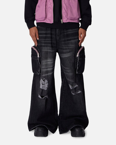 Standout from the rest with the C23 Rave Double Cargo Denim Pants by MNML. These are designed with an oversized rave fit, constructed from a washed black denim, distressing details throughout, cargo pockets at the outseam with exposed zippers, and finished with a traditional hem. Cop yours today at Culture Kings.