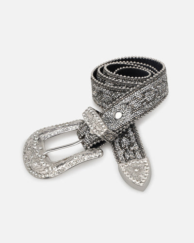 The Chevron Caviar Belt is made from black leather and features intricate Western design motifs on the metal buckle, tip and loop, with crystals applied throughout. Cop yours today at Culture Kings.