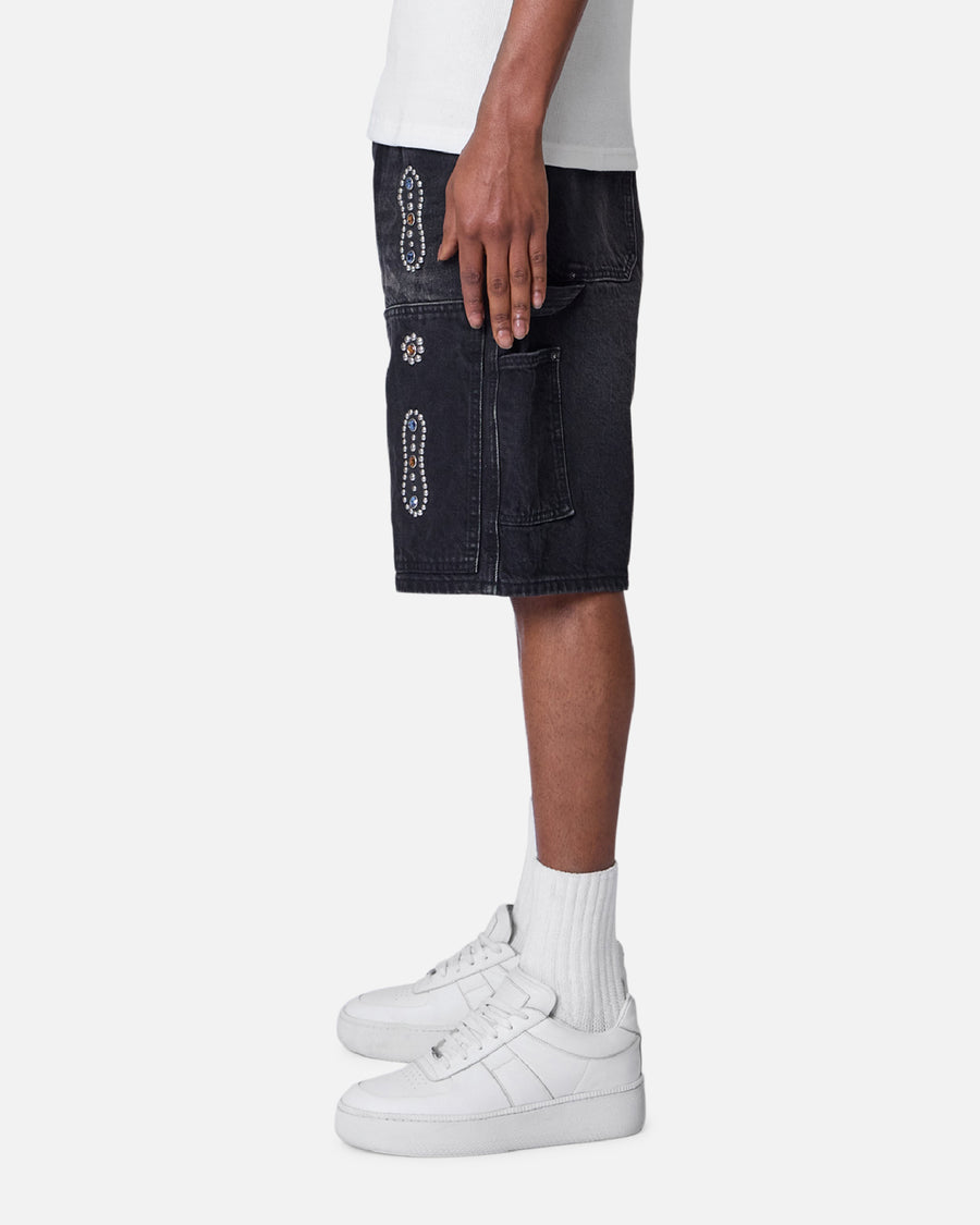 Elevate your fits' with Double Western Jewel Denim Shorts by MNML. These shorts are crafted from premium cotton denim for ultimate comfort. With a vintage wash and rhinestone detailing throughout with contrast stitching for a striking look. Finished with five-pocket styling for all your daily essentials, that exude a bold and edgy style. Cop yours today at Culture Kings.