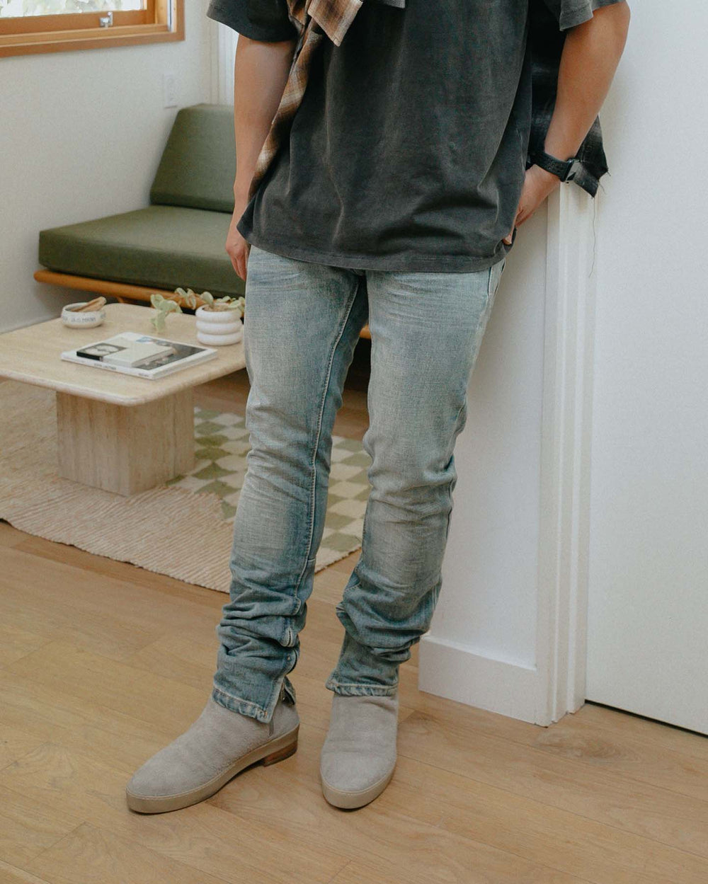 Courtland is wearing size 30 which has a slim fit.