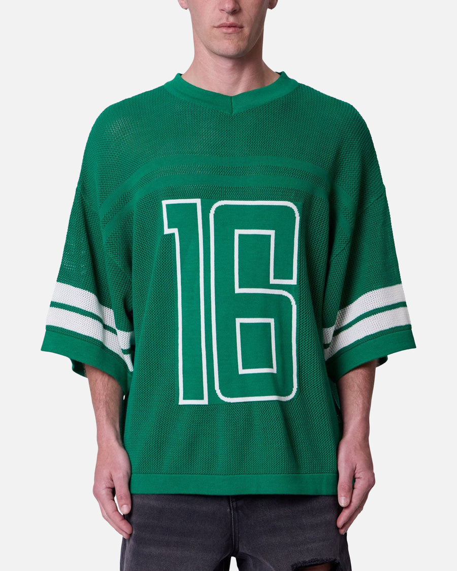 Stay comfortable while look fresh with the Open Knit Varsity Jersey by MMNL. This jersey is constructed from a open knit blend of cotton and polyester, with an oversized boxy fit with dropped shoulders. Designed with contrast knit numbers at the front and back, double striped sleeves, and ribbed finishes, it offers a classic varsity aesthetic in a breathable build. Cop yours today at Culture Kings.