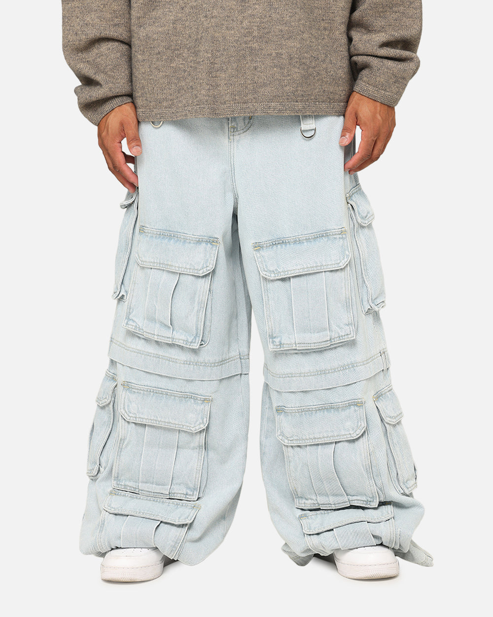 Standout from the rest with the Rave Multi Cargo Denim Pants by MNML. These are designed with a new oversized rave fit, constructed from a vintage washed denim, integrated belt at the waist from tonal fabric, and finished with exaggerated cargo pockets throughout. Cop yours today at Culture Kings.