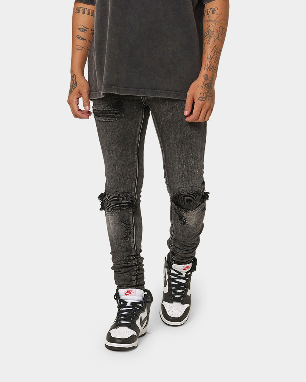 The X162 Stretch Denim Jeans are super tight, super stretchy, and sure to elevate your street style. Distressed panels decorate the design and are repaired with ribbed denim panels for an original look. These jeans are a must-cop for any streetwear enthusiast.
