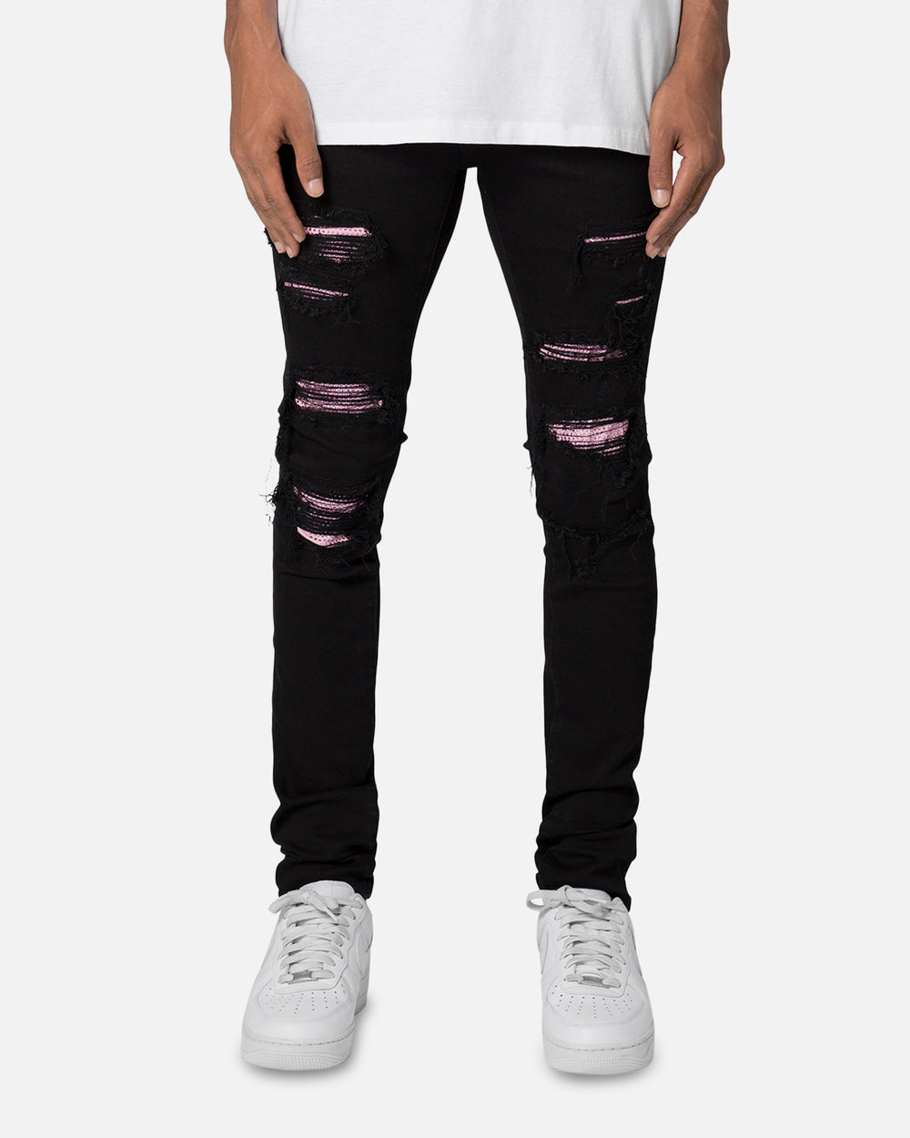 The X555 Crystal Skinny Denim is designed with MNML's new X fit which is skinny throughout with an extended inseam for stacking, and features distressing throughout, and finished with repair panels with rhinestones that give you a statement piece that can't be beat. Grab yours today at Culture Kings before stock runs out.