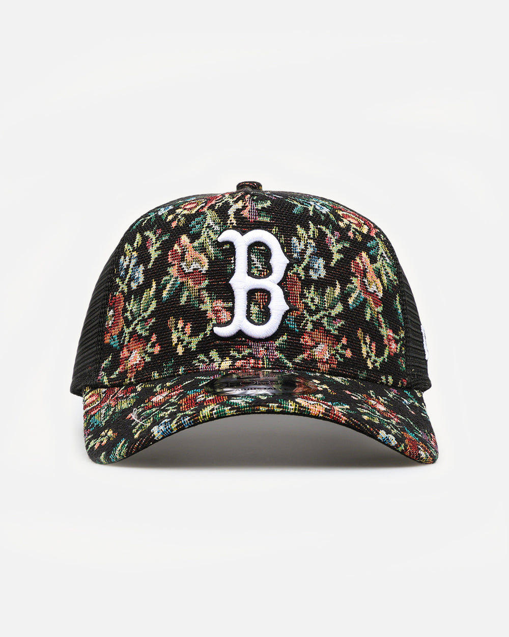 Boston Red Sox 'Black Floral Tapestry' 9FORTY A-Frame Trucker Snapback