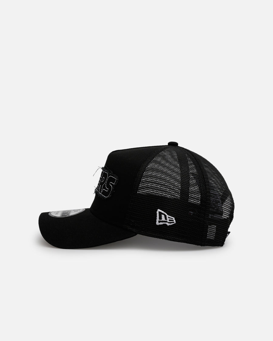 The New Era 9FORTY® A-Frame™ Trucker is an adjustable snapback style that merges the front two crown panels into one, creating a high-profile pinched shape.