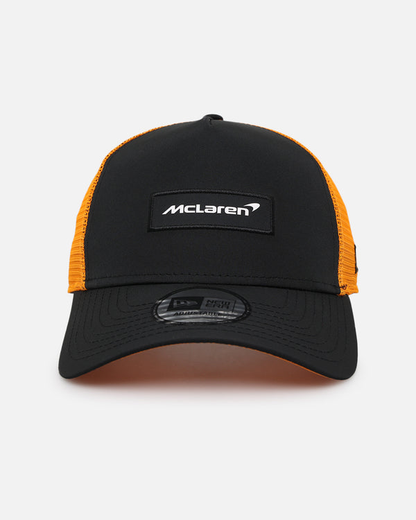 The New Era® 9FORTY A-Frame™ Trucker is an adjustable snapback style that merges the front two crown panels into one, creating a high-profile pinched shape.