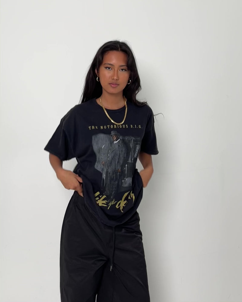 The late great American rapper, The Notorious B.I.G, is ranked by Billboard as among the ten greatest rappers of all time. After the release of his 1994 album 'Ready To Die' Biggie became a central figure in the East Coast hip-hop scene and expanded New York City's visibility in the genre. A drive-by shooting in 1997 took Notorious B.I.G's life at 24, but his legacy and music live on to this day. Culture Kings are proud to deliver the Official The Notorious B.I.G Capsule. Available in a range of colours, this is must-have merch for every Biggie fan. Each piece has been given the tick of approval from Biggie's estate including his mum, Voletta Wallace. Due to the process involved with acid-washing these tees, sizing can vary from garment to garment. We recommend ordering at least 1 size bigger than normal
