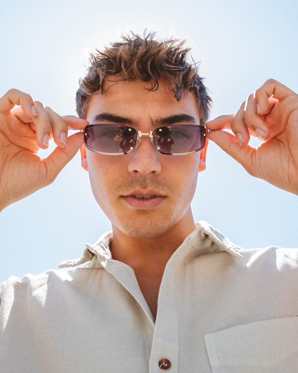 Sunglasses are the easiest way to accessories a fit and with the summer rolling in, you'll want to make sure you've got a pair that lift your look. With the Velvet Sunglasses, you'll be copping a flattering semi wrap-around frame with thin gold arms and tinted lenses.