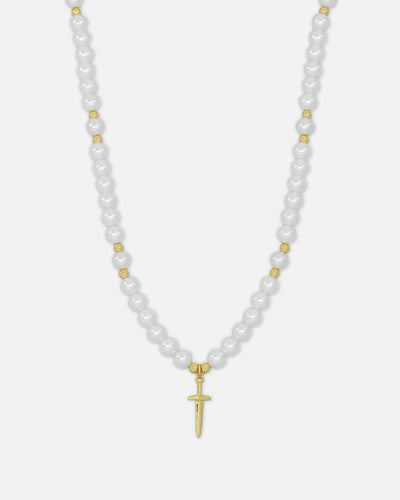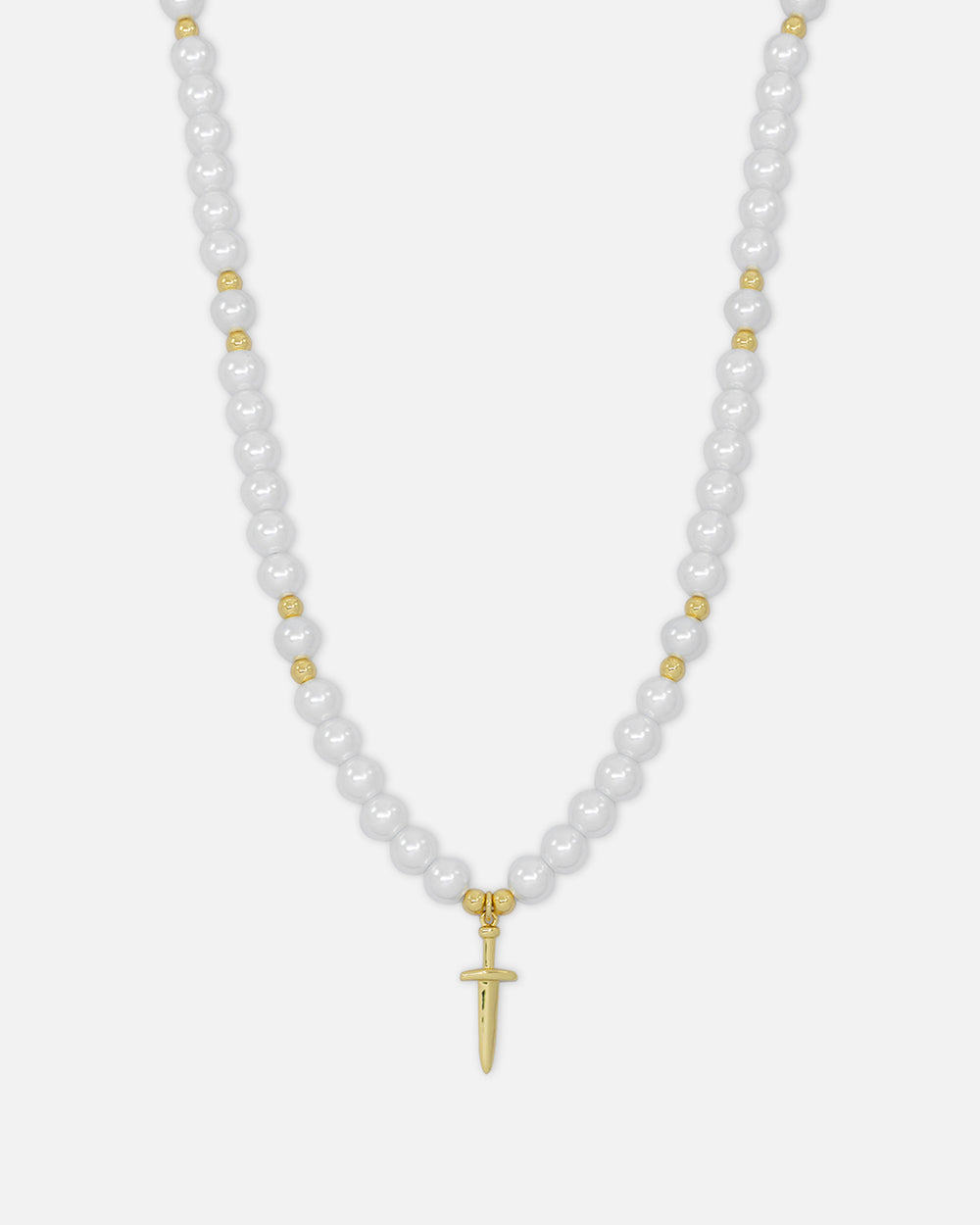NXS is here to luxe up your 'fits and add a striking finish to your 'fits. The Dagger Pearl Necklace features 7mm glass pearls all around with a minimalistic and clean mini dagger pendant to elevate your whole look. The 18k gold plated stainless steel base lets you know this piece was made to last. Be sure to secure yours today at Culture Kings.