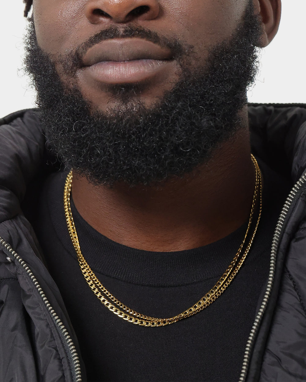 An elegant piece that will add the finishing touch to your outfit. The Diamond Cut Curb Set features dual intricate curb link chains, both sporting a strong lobster clasp closure, and high-quality 18K Gold coating on a stainless steel base, ensuring a durable and long-lasting quality finish. Perfect as a layering base and mixed into your daily staple pieces, be sure to secure yours today and thank us later.