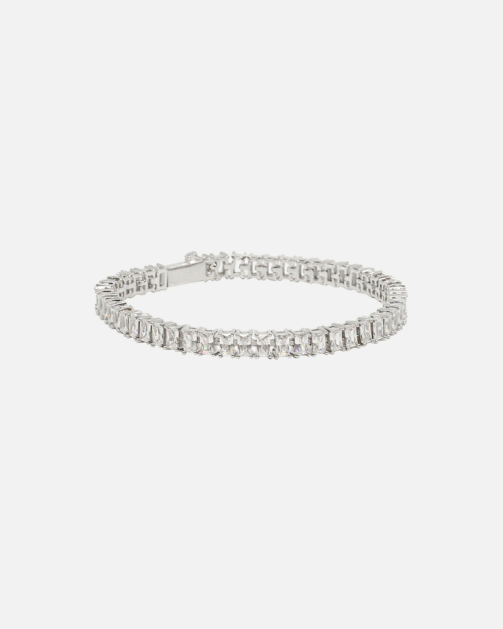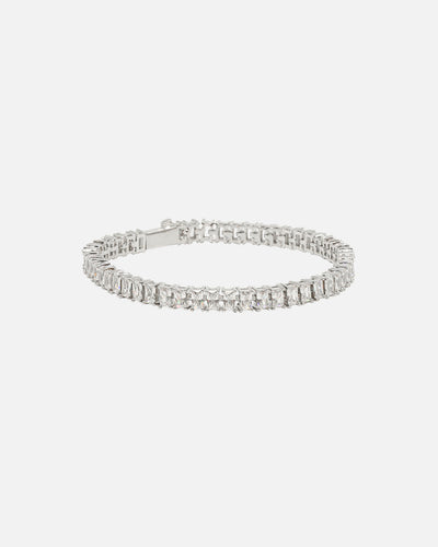 The Iced Baguette Bracelet is a must have feature piece to add to your collection. This bracelet offers luxurious, rectangle-cut stones on an 18k white gold plated stainless steel base so you know it'll last. Cop it today at Culture Kings.