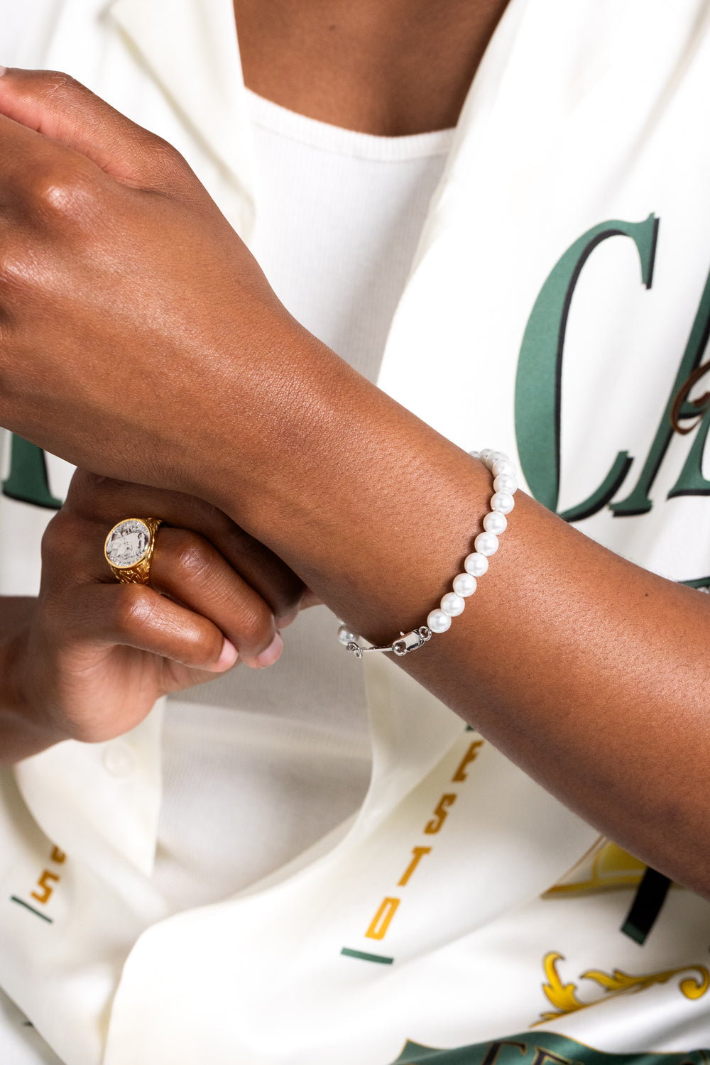 Add a touch of class and style to your 'fits with the Pearl Necklace by NXS. This necklace features 7mm glass pearls with a stainless steel base and finished off with a lobster clasp closure. This is the one to cop, grab it today at Culture Kings.