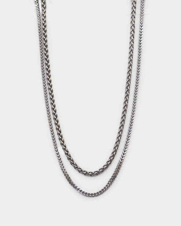 Get two looks in one with the Wheat And Franco Set. This set features 18k white gold plated stainless steel bases so you know it's made to last with lobster clasp closes to finish them off. The two different chain types make it standout from the rest. Cop yours today at Culture Kings.