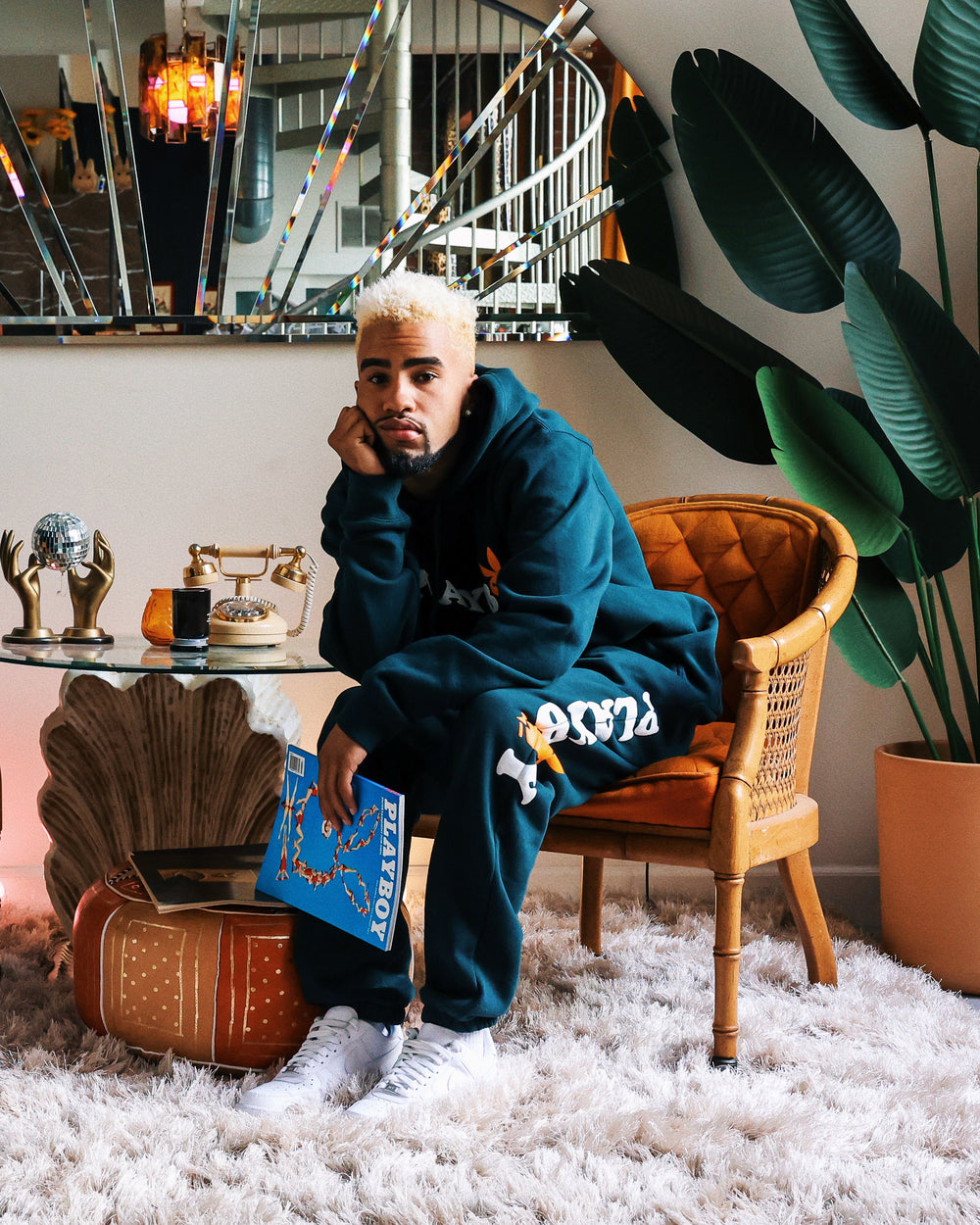Due to styling Malik is wearing a size L for a baggy look.