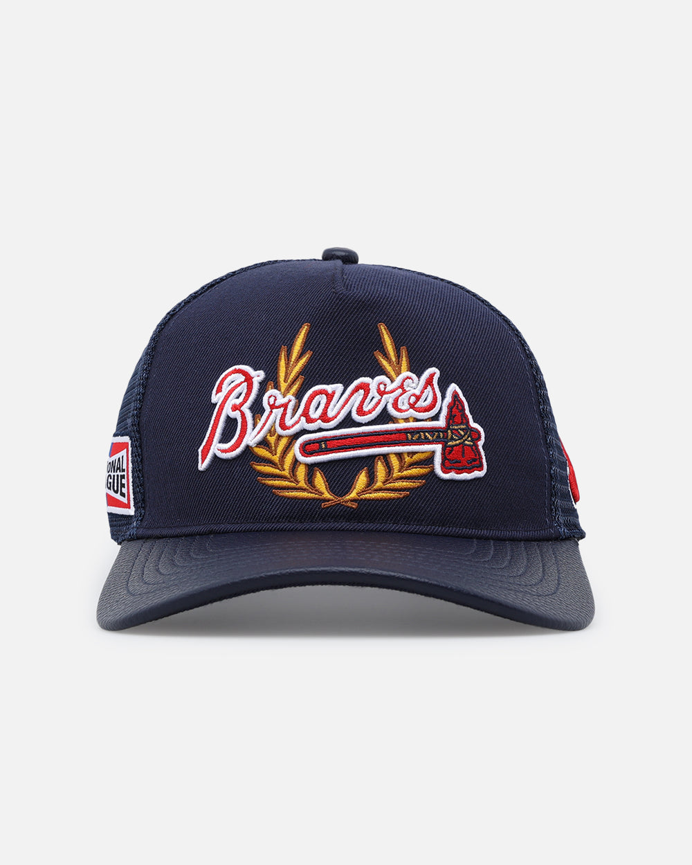The Atlanta Braves Fast Lane Logo Wool Trucker Strapback takes a classic high-profile and pre-curved brim to the next level with embroidered graphics and mesh back panels for a fire finish to your 'fits. Cop it today for an outfit topper that is sure to finish your look.