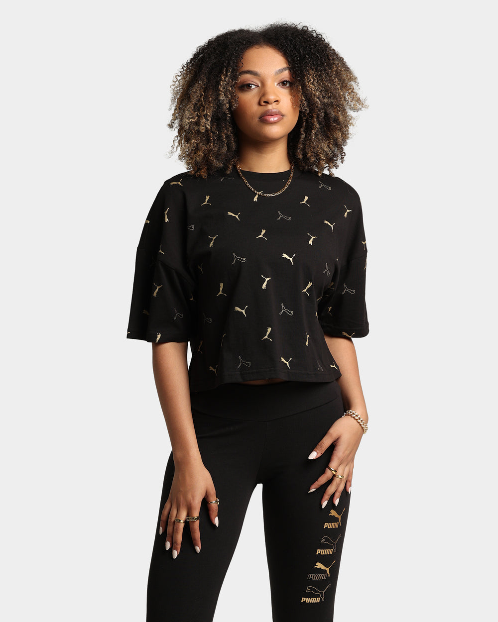For a bright, bold look, you can cop the Women's Classics Graphics Printed T-Shirt. Puma has decked out this cropped tee with an all-over logo print in gold to make you shine. Secure yours today!