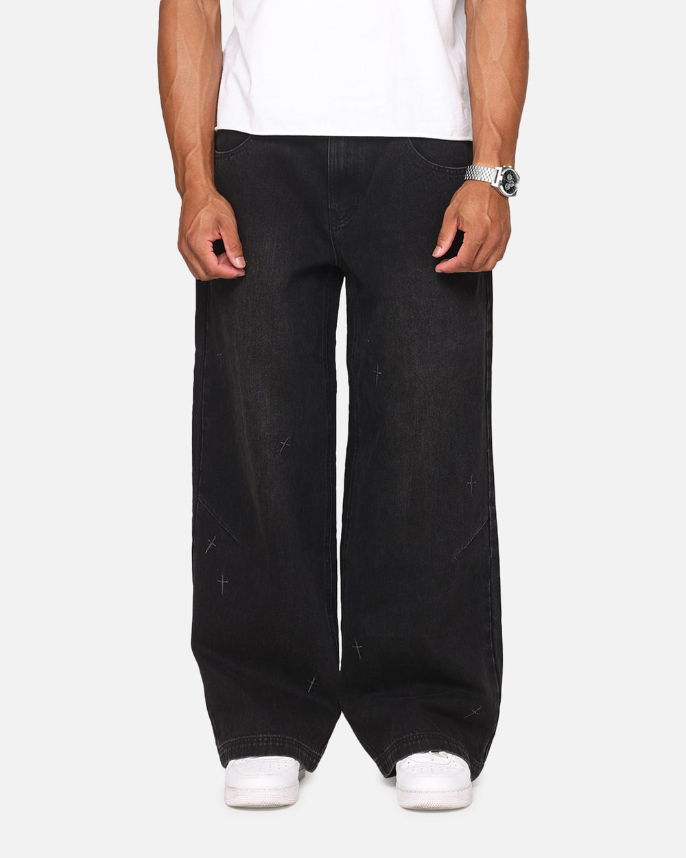 What screams streetwear more than some baggy denim? That's where the Amplus Graveyard Jeans have you covered. A simple yet classic look is created with embroidered graphics on a washed denim and longer length that helps it fall just right. Finished with pleats at the knee and a detachable pendant. Cop yours today.