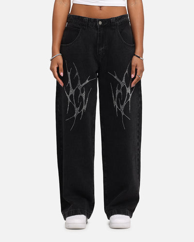 What screams streetwear more than some baggy denim? That's where the Amplus Tribal Rhinestone Jeans have you covered. A simple yet classic look is created with the washed denim, rhinestone details towards the back pockets, and longer length that helps it fall just right. Cop yours today at Culture Kings.