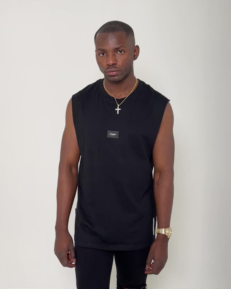 Your street style will elevate with the Annex Premier Oversized Muscle T-Shirt from Saint Morta. The soft cotton jersey is cosy and comfortable and the branded rubber badge on the front creates a unique look in a minimalistic way. Featuring twin-needle stitching for durability and raw-edge sleeveless cuffs for the ultimate moveability. Cop today.