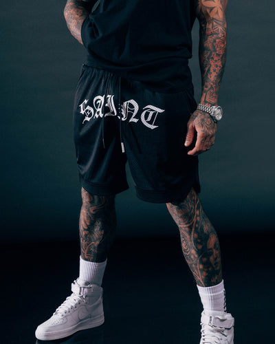 Kill the game in the Day Of The Dead Basketball Shorts. The Saint Morta logo features to the front of these mesh shorts, with a comfortable elastic waistband to keep you moving without care.