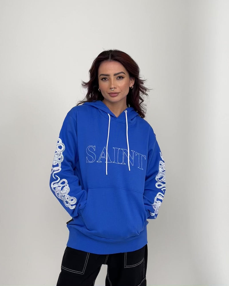 The Death Adder Hoodie from Saint Morta features a large chain stitched logo to the chest with printed details to the sleeves. Made from a soft french terry cotton with ribbed trims for comfort.