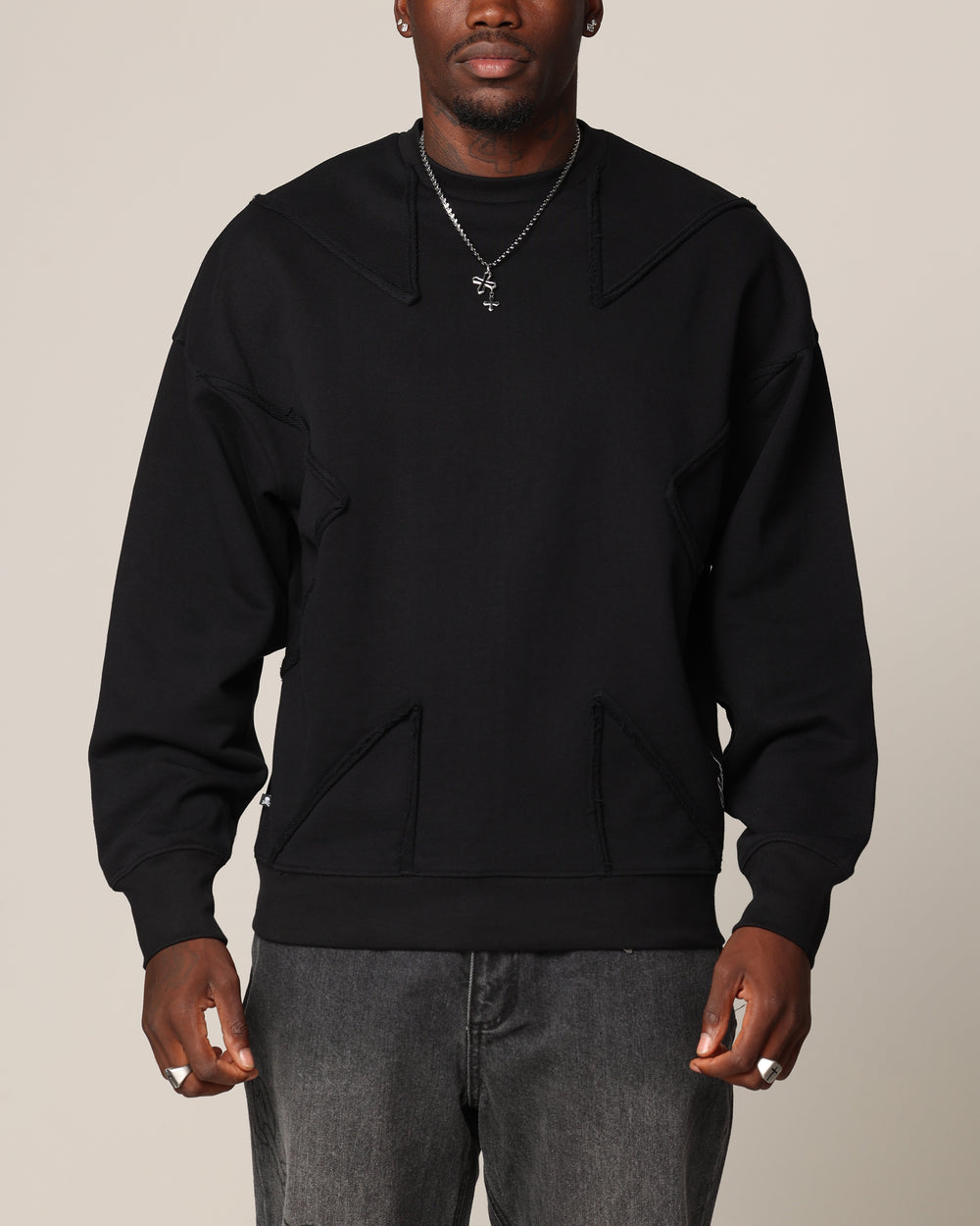 Keep ahead of the rest in the Deconstructed PSI Crewneck. Featuring distressed panelled stitching for a look that can't be beat, dropped shoulders for an off-duty vibe and ribbed trims to lock in the warmth. Grab yours today while stock lasts.