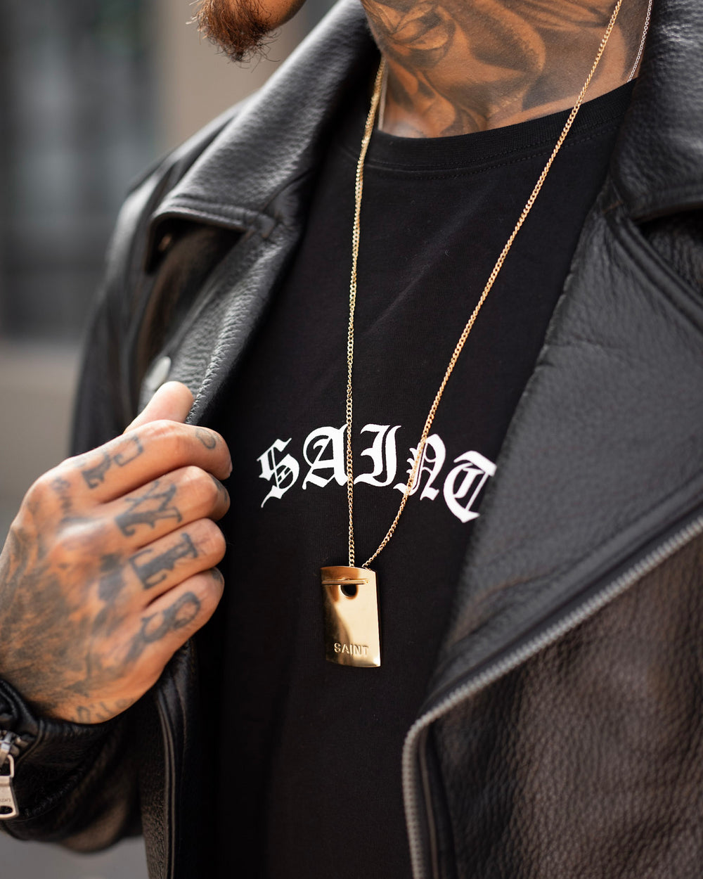 An elegant piece that will add the finishing touch to your outfit. The Dog Tag Necklace is crafted with precision, engraved Saint Morta graphics, with a high-gloss shine. Be sure to secure yours only at Culture Kings.
