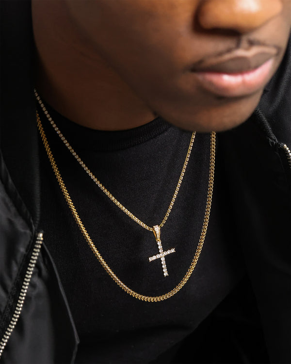 The Double Cross Chain is a premium set with handset CZ stones to shine from all angles. Plated with 18k Gold for a 100% Waterproof, Sweatproof finish.