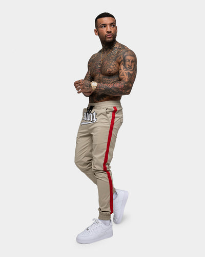 Saint Morta is back with another street staple. The Envogue Allstar Joggers feature a chenille logo across the front and contrast taping down either side for a bold look that is sure to turn heads. Cop your at Culture Kings while stocks last! - Dual back cargo pockets with flap opening - Regular fit - Chenille logo across the front - Gothic logo embroidery on the back - Contrast panels down the sides - Elastic waistband and cuffs - Adjustable drawstring - Dual side pockets - Composition: Stretch Twill - Colour: Stone/Red - Style: SMENVOGUEALSTJG.