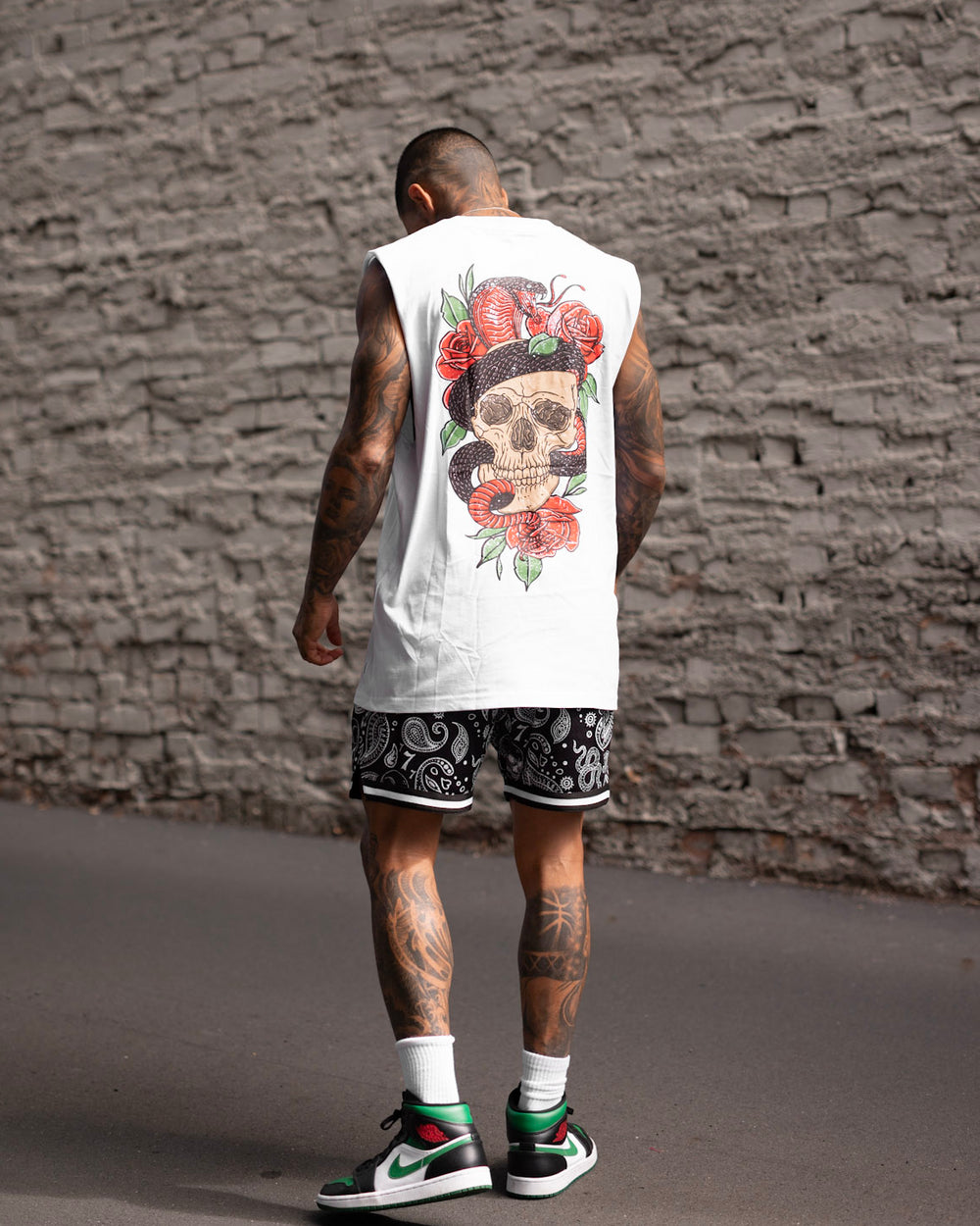 Dare to test the boundaries with the Forbidden Muscle Singlet. Sick Saint Morta graphics feature to the front and back on a vintage wash, creating daring vibes. Cop this sick muscle tee today!