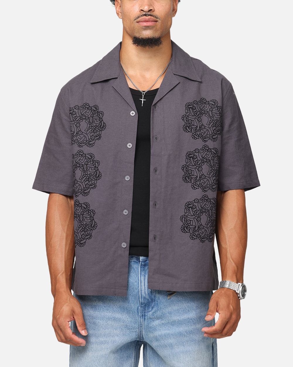 Cop the Gardenia Button Up Shirt so you can create some dope layered looks this season. This button up tee is lightweight and features some iconic graphic prints that are sure to have you standing out from the rest. Get yours today.