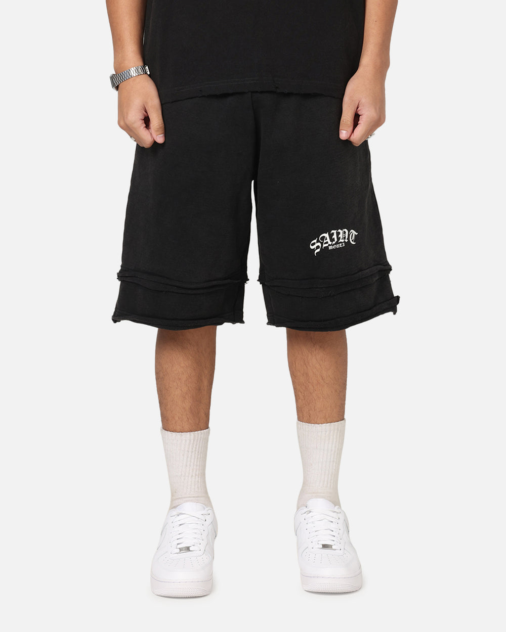 Kick back and relax with the Gothic Layered Sweat Shorts. These shorts feature printed graphics for a look like no other, a layered detailed look hems to keep it casual, and an elastic waistband that has an adjustable drawstring for ultimate comfort. Cop yours today!