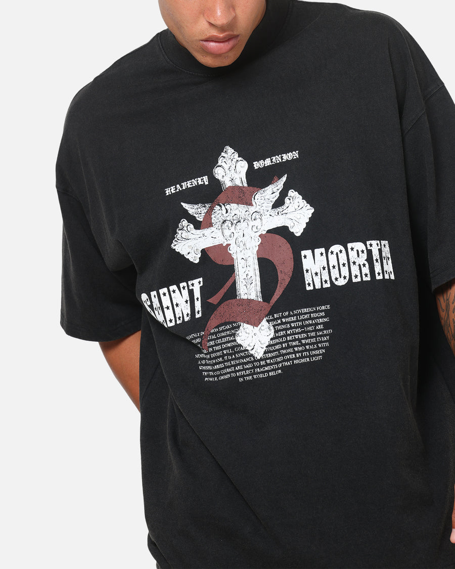 Elevate your everyday looks with this powerful Saint Morta tee. Printed graphics, dropped shoulders and twin-needle stitching makes this piece a wardrobe essential that you won't want to go a day without. Be sure to secure yours today while stock lasts.