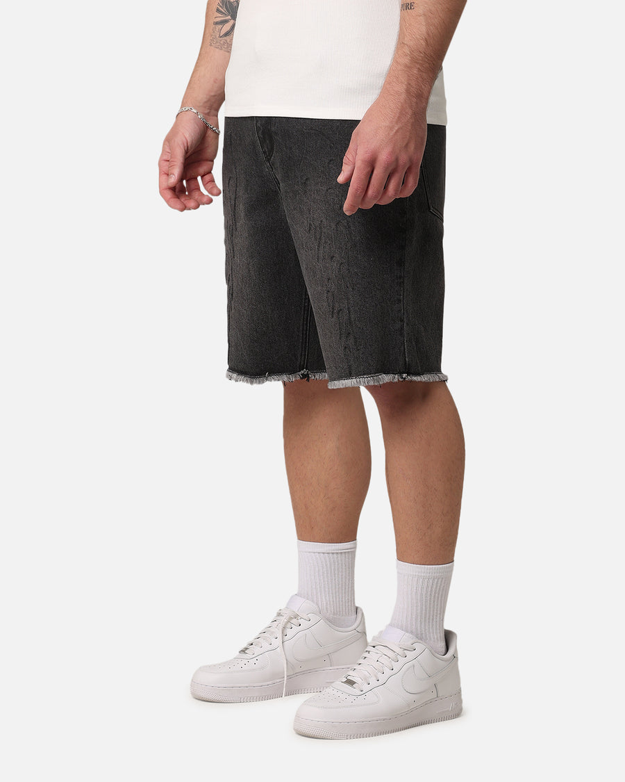 Have all eyes on you in the Inferno Baggy Denim Shorts. Featuring embossed graphics paired with a detachable metal pendant and raw hem for a textured look that gives these shorts a strong visual impact. The rigid washed denim construction lets you know that this style was made to last. Don't sleep on this pair, cop it today.
