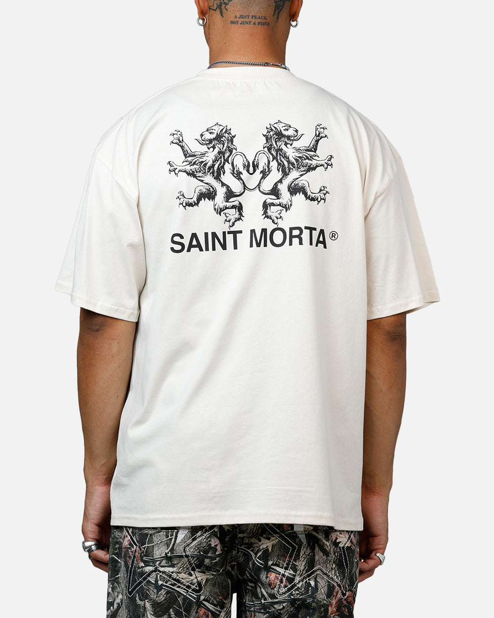 Elevate your everyday looks with this powerful Saint Morta tee. Printed graphics, dropped shoulders and twin-needle stitching makes this piece a wardrobe essential that you won't want to go a day without. Be sure to secure yours today while stock lasts.